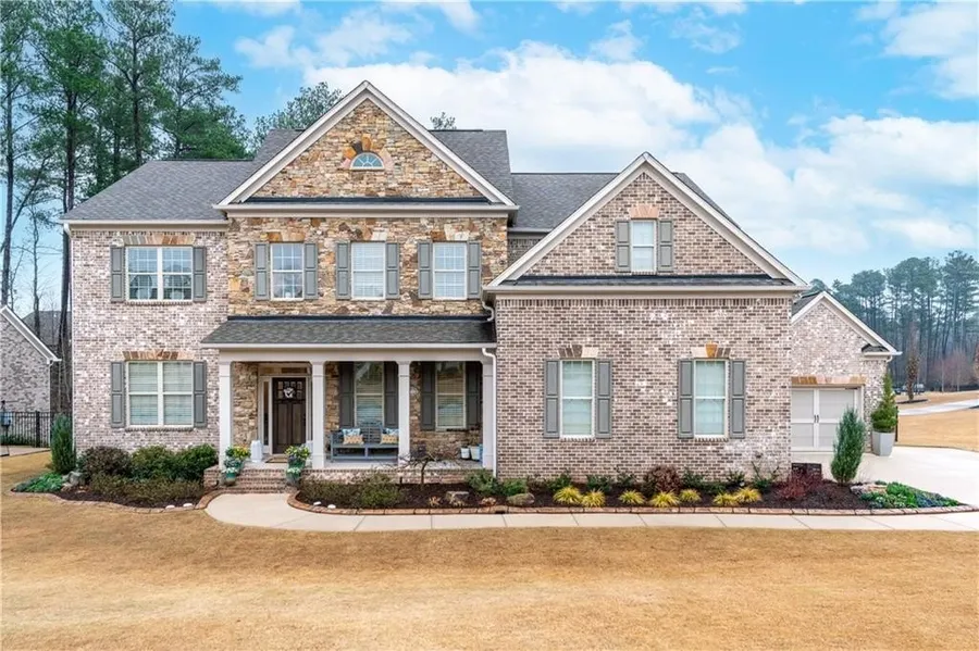 Welcome home to McClure Farms, located in one of Cobb County's most sought-after school districts. With five bedrooms, four full baths, three garages, and a large daylight basement stubbed for a bath, there is space for everyone-and room to expand. Set on a rare, usable 0.49-acre corner lot, this three-sided brick, upscale Traton home stands apart with beautifully established landscaping and thousands of dollars in upgrades inside and out. Built in 2017 and thoughtfully designed, the main level features soaring 10-foot ceilings, a two-story foyer, and a stylish yet practical mudroom entry off the garage. The chef's kitchen-complete with abundant white cabinetry, stone countertops, a large island, and walk-in pantry-opens to the living room with coffered ceilings, fireplace, and custom built-in bookshelves, creating a warm, functional space for everyday living. A main-level bedroom with full bath offers flexibility as a guest suite or home office, complemented by a separate dining room for formal gatherings. Upstairs, featuring 9-foot ceilings, four additional bedrooms include an oversized primary suite with double vanities, soaking tub, separate water closet, and a large walk-in closet. Two full baths serve three spacious secondary bedrooms. An open-concept media room with a closet (easily enclosed to create an additional bedroom) and a conveniently located laundry room with sink complete the upper level. The full daylight basement, stubbed for a bath, provides exceptional potential for future living space-or ample storage today. Out back, a deck with steps to the yard and a full-width walk-out patio overlook the thoughtfully and lovingly designed, seasonally blooming landscape. All flower beds and islands feature concrete curbing and edging, and the yard is finished with stone steps, black aluminum fencing, and irrigation covering nearly the entire lot. In addition to three-sided brick and stone accents, the home features HardiePlank siding and Hardie board trim for durability and low maintenance. Impeccably maintained, the HVAC systems have been on a regular service plan. Tucked into the interior of the neighborhood near two cul-de-sacs, the home offers access to the community pool and playground and is zoned for Frey, McClure, and Allatoona High School-one of Georgia's top-ranked high schools and a Georgia DOE AP School of Distinction and AP STEM Achievement School. Convenient to schools, shopping, and commuter routes-it's easy to see why this home stands apart. COMING SOON! PROFESSIONAL PHOTOS WILL BE UP FRIDAY, JAN 23