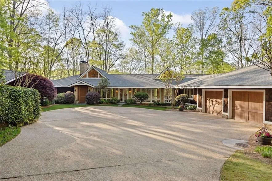 Private Luxury Lakefront Estate-Where Mountain Lodge Charm Meets Modern Grandeur-Prepare to be captivated from the moment you step inside this extraordinary lakefront sanctuary where the drama of 21-ft vaulted ceilings, with heavy timber trusses, tongue & groove pine ceilings, and walls of glass provide sweeping views of water and woods. Framed by a wooded 3-acre lot, this architectural gem blends the serenity of a mountain retreat with the comforts and sophistication of a luxury estate-level residence just minutes from Atlanta s city center, airport, and some of the South's most prestigious private schools. From the Vermont slate floors of the dramatic window-lined corridor to the exposed beams and stone columns throughout, every element of this home whispers comfort and quality. The sunroom, adorned with built-in bookcases, opens onto more than 2,000 sq ft of slate and stone terraces p...