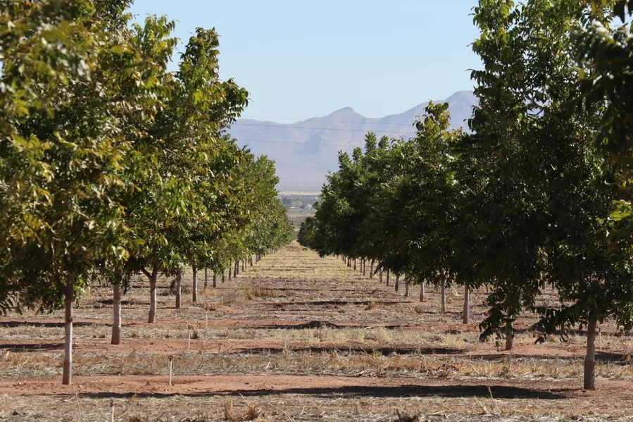 New pecan planting, 1st thru 5th leaf located three miles northeast of Elfrida, approximately 40 miles south of Willcox. Five irrigation wells delivering water to 405 acres of pecans through highly efficient automated irrigation system. The farm has water rights within the Douglas INA. Improvements include single family residence, shop, apartment, and pole barn.