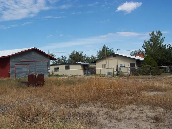 Cute 2 bedroom 1 bath home with large living room with brick fireplace & built in bookcases. Kitchen has solid wood cabinets. Guest house is a large 1100 + sq foot 1 bedroom 1 bath with large storage area that could be turned into a bedroom. Property is fenced with 5' high chain link, barn/shop with cement floors, 2 bays 110/220 outlets, and separate tack room with horse coral. This is a must see property, just 2 miles from downtown on paved road, priced to sell.