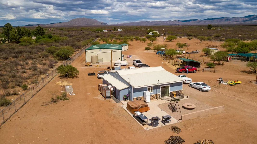 4.6 Acre Fully fenced residential/commercial use, this property is turn key and lots to offer. 1286 sq ft 2 bedroom 1 bath, living room or office, great room, 90 degree views! The outdoors features a large patio area with a hot tub, outside shower, full house generator for backup. A 40'x60' auto repair shop w/ 2 car lifts, electric installed, skylights, ADA compliant bathroom & parking, 2 roll up doors. RV hookup installed. Animals & pens all set up and ready to enjoy, two 2500 gallon water tanks & a large storage shed. MUST SEE!!!