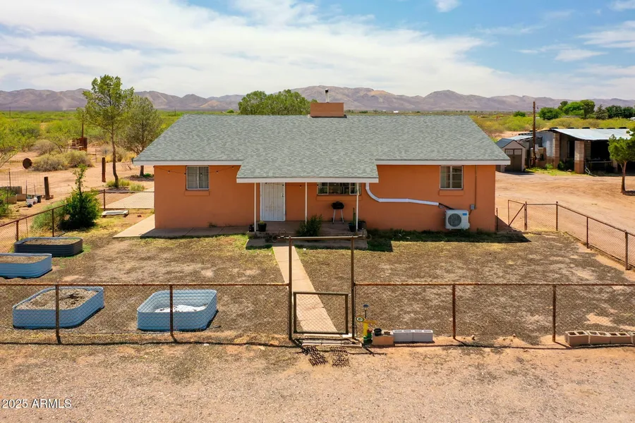 Back on the market at no fault of the seller! Now is your chance to own this beautiful home set on 100+ acres of sweeping desert. This updated 3-bed, 2-bath offers 2,048sqft of comfortable living with endless potential. Located off a newly paved, county-maintained road, the rocked driveway passes through luxuriant ground dotted with mature trees and wild grasses to welcome you through to home base. This concrete block house with comp shingle roof is fully equipped with energy-efficient mini-splits, stainless steel appliances, granite countertops, ceramic vanities, an open floor plan with central double fireplace, upgraded light fixtures & ceiling fans, plus a large utility room making it a functional retreat for your visionary buildout. The house perimeter has eucalyptus, oak, cypress trees and fruiting pomegranate bushes, irrigated garden beds with premium Fox Farms soil, and a concrete pad. The double driveway leads to a powered workshop with storage and small animal coops. With 2 fully fenced 20-acre parcels + a wild, gorgeous back 60-acres, this property has quiet seclusion, space to build, and access to utilities. A private well delivers abundant, fresh water to an electronic descaler and 3 frost-free hydrants. Whether you dream of a permaculture farm, artist residency, equestrian haven, or a multi-home compound this unique property is the perfect canvas. Just 20 minutes from Bisbee and Douglas, this desert haven blends natural beauty, functionality, and boundless potential. You'll have to come and see it for yourself!
