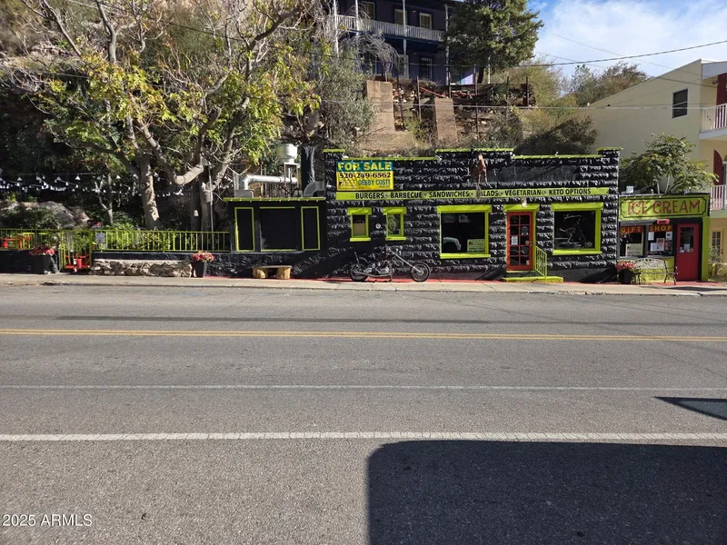 Ever dreamed of owning a piece of historic Old Bisbee? Or running your own restaurant in one of Arizona's most iconic locations? This turnkey property makes it possible-and even includes a piece of Castle Rock! The Bisbee Badassery is more than a restaurant-it's a restaurant, bar, ice cream shop, and gift shop all in one. With indoor dining, cave seating, outdoor patio space, and even a rooftop stage for live entertainment, this property offers an unforgettable experience for guests. Every major upgrade has already been completed: - Brand-new split units for climate-controlled comfort - Stunning bar and remodeled restrooms - Entirely upgraded open kitchen with all new appliances, fryers, grill, vent system, and prep tables-designed for smooth service indoors and out New plumbing, lighting fixtures, tankless water heater, freezer, and 9 security cameras Extras include nearly everything you need to operate immediately: misting system, Bigfoot statue, glassware, dishes, video games, display cases, kegerators, patio heaters, plus a cactus garden, 5 caves and a beautiful yellow rose tree. This is a rare opportunity to own a truly unique piece of Old Bisbee's history ready for you to walk in and start operating today!