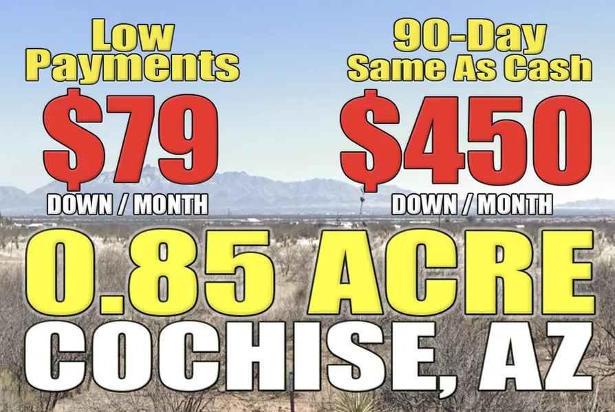 90-Day Same as Cash: $450 Down/Mo. or $79! Beautiful 0.85 Acre in Cochise, AZ!