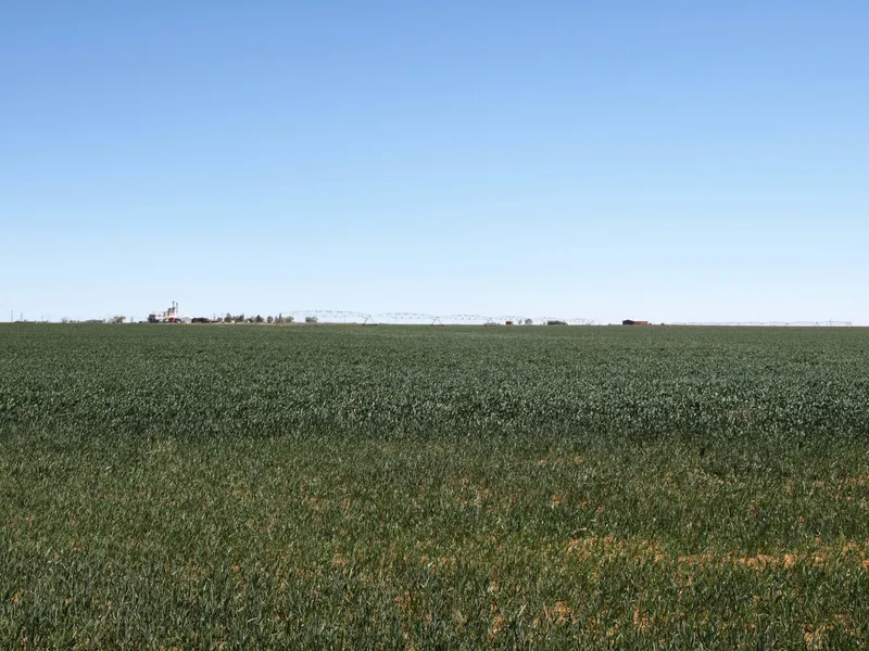 The large tract has perimeter barbed wire fence. This land is adjacent to the Feedyard that is also for sale.