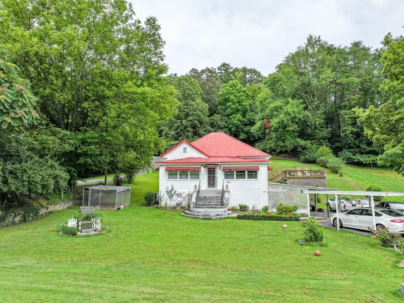Welcome Home!featuring 10 foot ceilings, original hardwood, original kitchen cabinets this home is ready for its new owner! The roof is approximately 12 years old, HVAC was replaced in 2021 with a 10 year warranty. This 3 bedroom home is currently being used as a 4 bedroom with ease. Large back deck and lots of room for parking! This home sits on almost an acre lot- could make a great rental property as well!