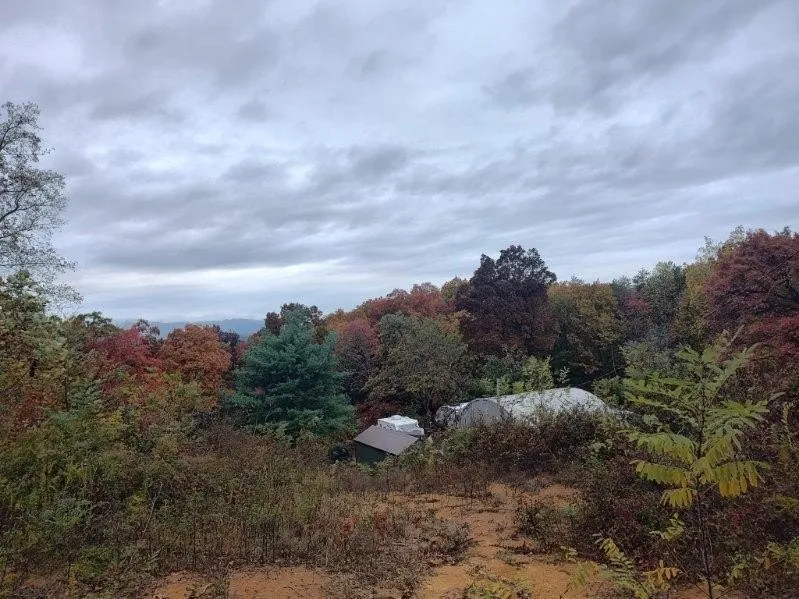 Private 1.43 acres featuring an RV hookup, electricity, well (with 2 year old pump), and septic already in place, plus an extra spot for another RV. The property includes a large dome-shaped metal garage with water and electricity, set on a spacious concrete pad. There's also a metal shed and a small pond to enjoy.