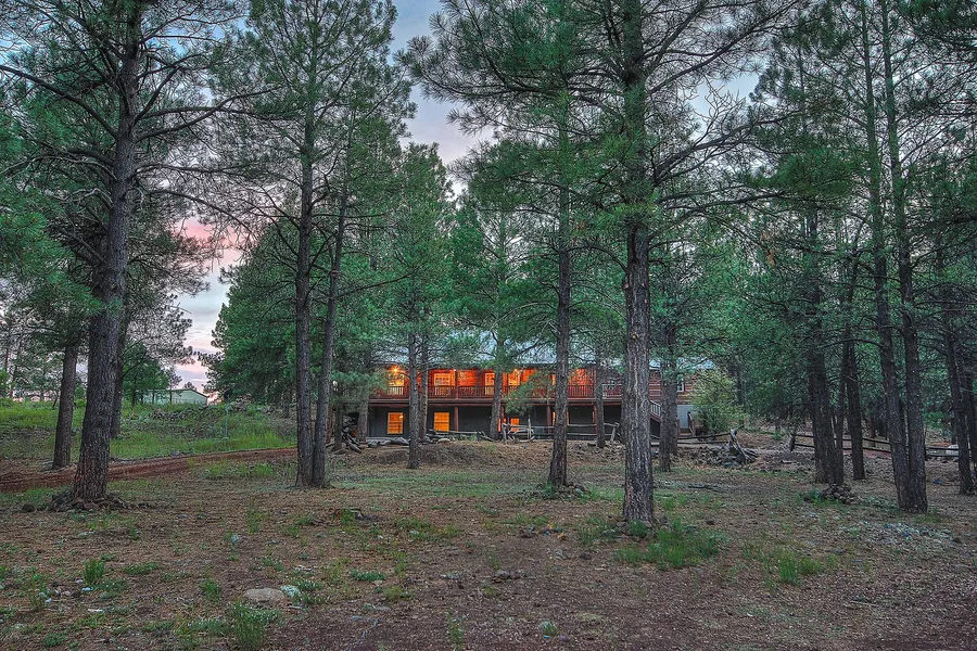 Absolutely stunning 20 acre estate with historic homestead still on property. Gorgeous Caribou Log Home is surrounded by the National forest on 3 sides with absolutely breathtaking views of the San Francisco Peaks from the kitchen windows. The log home has 3 levels with separate living quarters on each level. There is the potential of 2 families purchasing. Features include new tiles, carpets, updated kitchens, baths, walkout basement, a wrap-around covered porch, 4 car garage and large detached shop with drive through roll up doors perfect for storing your hobbies or equipment. There is a restored windmill and elevated water tower that are decorative only. This place is a horse lovers dream and the perfect base camp for outdoor adventures. 20 acres fenced and cross fenced!