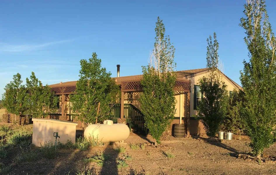 Sunlit and comfortable, the bedrooms are optimal for relaxing after a long day. Two out of three come with walk-in closets for storage, including the primary suite. Discover a double vanity in its ensuite along with a shower-tub combo. Greet the day or the evening on either of two tranquil outdoor spots: first, a large covered porch extends the entire length of the home's west frontage, overlooking breathtaking vistas of the San Francisco Peaks and other nearby mountains. Or second, on the opposite side, facing the Little Colorado River Valley, a sturdy arbor stretches along the house from end to end, with a propane oven and griddle to equip you for weekend cookouts.