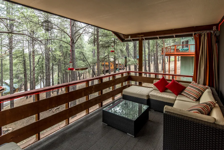 It's no wonder that this vacation rental has stellar reviews on Airbnb, nor that it stays booked solid. Guests say that they love stargazing in the 6-person hot tub, lounging on the two covered decks, and cooking in the gourmet kitchen. They love the woodburning stove in the winter and the backyard firepit on crisp autumn evenings. Theres even a perfect sledding hill on the property where the kids love to play in the snow.Youll love getting distracted by hummingbirds buzzing around as you sway in the breeze with a good book on the covered hammock deck. Control the entire house from your smartphone dim all the lights to 10%, lock and unlock the doors, or adjust the thermostat. Even turn on the roof snow-melt system, all from the palm of your hand, whether youre in the house, the hot tub, or 5,000 miles away. Artfully decorated and fully furnished, this turn-key vacation rental is a top performer with repeat customers. The house is brimming with upgrades like a Rinnai tankless water heater, EWS Spectrum whole house water filter and conditioner, whole-house surge protector, in-wall surround-sound, and a top-end ADT security system. Enjoy all four beautiful seasons in Flagstaff with 1,000 square feet of deck space! The outdoor living room deck is upstairs, and is covered. The downstairs hammock deck is also covered. The largest deck, the hot tub deck, is perfect for star gazing and sunbathing. Theres even a raised 60 square foot flowerbed/garden off one of the hot tub deck just waiting for someone with a green thumb to plant vegetables or flowers. The house is on nearly a half-acre of heavily treed land with a huge back yard.