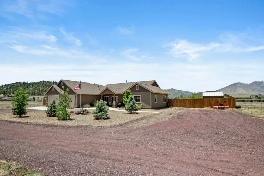 Stunning home & stunning sweeping mountain views. Single level living at it's finest. Gorgeous kitchen, granite counters, walk in pantry & stainless appliances. A lovely Great room is accented w double sided Malpais stone fireplace, fashioned with a handcrafted timber mantle. Split floorplan allows for a private, and spacious, Main Suite, w/covered patio. Enjoy the added bonus of a 2nd In-Law suite at the opposite end of the home. A 5th bedroom can double as an office if that suits your needs better. A brand new, Armstrong, 35 x 40 detached, metal RV and Equipment Building. Fully insulated, heated w/water to the exterior of the building. 2-6 x 14 Garage Doors, w/ pull through access to Slayton Ranch Rd. Walk through gate for pedestrian F/S access. Motorized F/S is just up the road.