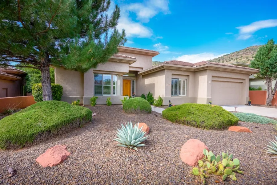 Experience this outstanding 4 BR, 3 BA Sedona Golf Resort residence - featuring panoramic red rock views, a lush backyard haven & vistas of the verdant fairway. The gracious entry opens to the fabulous 2686 sq. ft. split floorplan & the high ceilings provide a beautiful, bright ambiance. The captivating verdure of the gorgeous outdoor living area is enjoyed from the LR, DR, Kitchen & Primary Suite. The tastefully remodeled kitchen embraces sophisticated design elements like Calacatta Quartz countertops, maple cabinetry w/dove grey finish & brushed nickel fixtures. In addition to the lovely Primary Suite, there is a 2nd guest suite w/ bath, + 2 add'l guest rms/offices which share a full BA. New roof in May 2023! See supplement for more info about the recent updates & features of this home.