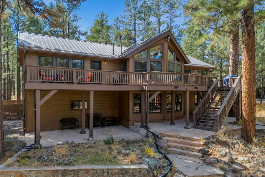 Big trees and beautiful blue skies! Welcome to cool, comfortable living at 7000 feet. Choose to live in one of two beautiful homes situated on 5 pine-covered acres just minutes from the Arizona Snowbowl or historic downtown Flagstaff. The main house features 3 bedrooms and 3 full baths under nearly 2700 square feet of livable space, while the cottage house spans roughly 925 square feet and highlights 2 bedrooms and 2 baths. The entire property is tucked away beneath the shadows of the San Francisco peaks and offers endless hours of solitude, privacy, peace, and quiet. The fact that the sale of this property comes with not just 5 acres but 2 entirely separate homes means it opens up endless possibilities and opportunities whether it be a family cabin or a profitable short-term rental.