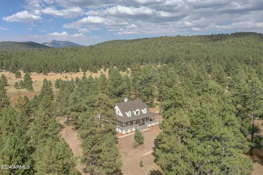 Main home is 3,700 sq ft plus a separate Casita of 375 sq ft a total of 4,075 sq ft. Nestled on over 11 acres of pristine land surrounded by National Forrest with breathtaking views of Sitgreaves Mountain, this exceptional one-of-a-kind equestrian estate offers unparalleled privacy. Perched on a raised lot amidst towering pines, enjoy complete seclusion while being just 20 minutes from all of the amenities of Flagstaff. A short drive to popular attractions like Snowbowl, The Grand Canyon, Bearizona, Kaibab Lake, Kendrick Peak and Historic Route 66 in Williams, it's perfectly positioned for adventure. On-site, enjoy your own private sledding hill, fire pit, side-by-side track, while the property's updated barn, three corrals and round pen make it an ideal equestrian haven Step right off the property onto hiking and horse-riding trails in the national forest or explore over 300 miles of UTV trails. Fully remodeled with meticulous attention to detail, the home boasts a stunning kitchen featuring semi-custom Thomasville soft-close cabinetry, a vibrant kitchen island, 60-inch Italian Hallman gas range, GE Profile stainless steel appliances w/oversized walk-in pantry. Luxury throughout w/heated floors, high-end shutters, modern light fixtures, high-efficiency windows, smart thermostats and custom Roman shades. The inviting great room, complete with a cozy, high-efficiency fireplace, French doors and mountain views, leads to the back patio, a charming sitting room, a lavish ensuite w/natural stone flooring, jetted soaking tub w/view, and walk-in closet. Upstairs, you'll find four generously sized bedrooms, each outfitted with blinds and ceiling fans for comfort. The property continues to impress with a fully remolded barn/RV Garage/workshop w/200amp service that includes a studio apartment complete with a kitchenette & bathroom, plus a greenhouse for year-round gardening. This one-of-a-kind home combines luxury and nature, offering the ultimate retreat. Plus 14 security cameras covering the property including the interior and exterior barn/crawl space and garage! Hauled Water w/large 10,000-gallon cistern and oversized septic tank fully serviced in 2021.