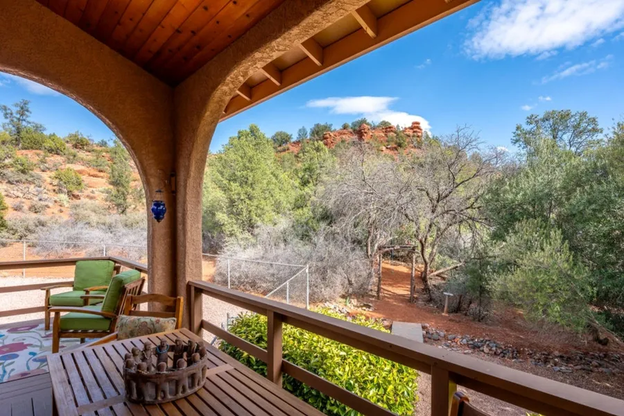 Located on a quiet cul-de-sac and backing into the National Forest, this home invites you to step outside and embrace nature. Just through the Fairy Glen, is Transept Trail, or take the six-mile journey to Oak Creek. From your deck, soak in the dramatic Coco Knoll views, immerse yourself in high desert beauty, and enjoy front-row seats to Sedona's breathtaking Red Rock Bluffs.