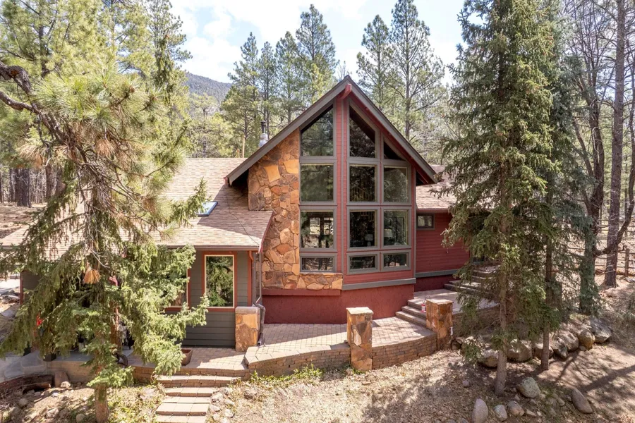 Nestled in the luxurious rural community of Mount Elden Estates, this reimagined home provides a modern escape into the Ponderosa pines across two acres. This multigenerational estate offers a combined 3,532 sq. ft., featuring 4 bedrooms and 4.5 bathrooms distributed among a main house, an overflow bunkhouse loft, and a single-level guest house, giving you flexible living options. The main house, the property's highlight, showcases floor-to-ceiling windows and an open-concept great room, including 3 bedrooms and 2.5 baths covering 2,058 sq. ft., with the primary suite on the main floor. Additional features comprise wood-encased windows, a covered patio, a large fenced-in area, a main floor office/den that could serve as a guest room, a custom wood spiral stairway leading to a spacious private guest bedroom equipped with a full bathroom, a new roof in 2025, and so much more. The oversized...