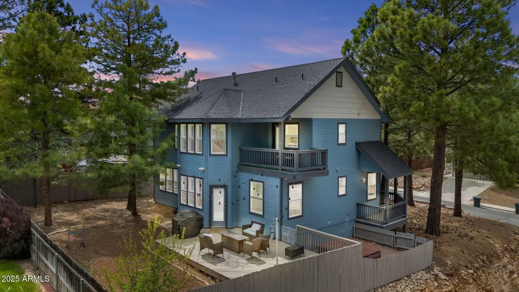 Peak views, wraparound decks & modern mountain living! Situated on a private corner lot in Ponderosa Trails, this beautifully updated 4-bed, 3-bath home features a versatile game room/flex space that could serve as a 5th bedroom. Renovations include quartz countertops, new flooring, fresh paint, updated lighting, stainless appliances, and epoxy floors in the two-car garage. Enjoy central A/C, a heated driveway, home office, and full laundry room. The spacious primary suite offers a fireplace, walk-in closet, and private balcony with breathtaking San Francisco Peak views. Mountain School, Ponderosa Trails Park, the Flagstaff Urban Trails System, and NAU are all nearby. Currently a successful Airbnb with strong rental history—ideal for full-time living, second home, or investment.