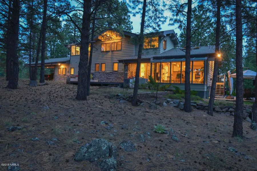 San Francisco Peaks views, privacy, harmony with nature, and yet located in the premier Westwood neighborhood, you are minutes from NAU, WL Gore, and west Flagstaff. Easy access to I-40, I-17, and Route 66. Selling at $150,000 below appraisal, combine this setting with a quality Lindal cedar post and beam open floor plan home designed for easy, carefree mountain living. The grey-green HardiPlank exterior siding and TimberTech decks blend with the ponderosa pines and the interior radiant subfloor heat maintains a constant temperature free from vents and blowing air. Kitchens are always gathering spots and this one adjoins the dining room, sun room, and cozy mini family room with media connections. See supplemental for more information Granite counters, custom cabinets, oak floors, high quality windows and skylights make this space inviting and functional for entertaining. The main floor includes a master suite or guest quarters with external access, high ceilings, full bath, office and an area for laundry or kitchenette. The upper floor can also be used as a master suite or loft overlooking the great room, and includes a laundry, walk-in closet, and double vanity. Westwood residents have access to the Flagstaff Ranch Golf Club, equestrian facilities, Flagstaff Municipal Airport, the University, highly ranked regional hospital Flagstaff Medical Center, and many national parks and hiking trails.The home is in impeccable condition and an appraisal and home inspection are available at viewing. Westwood residents have access to the Flagstaff Ranch Golf Club, equestrian facilities, Flagstaff Municipal Airport, the University, highly ranked regional hospital Flagstaff Medical Center, and many national parks and hiking trails.The home is in impeccable condition and an appraisal and home inspection are available at viewing.