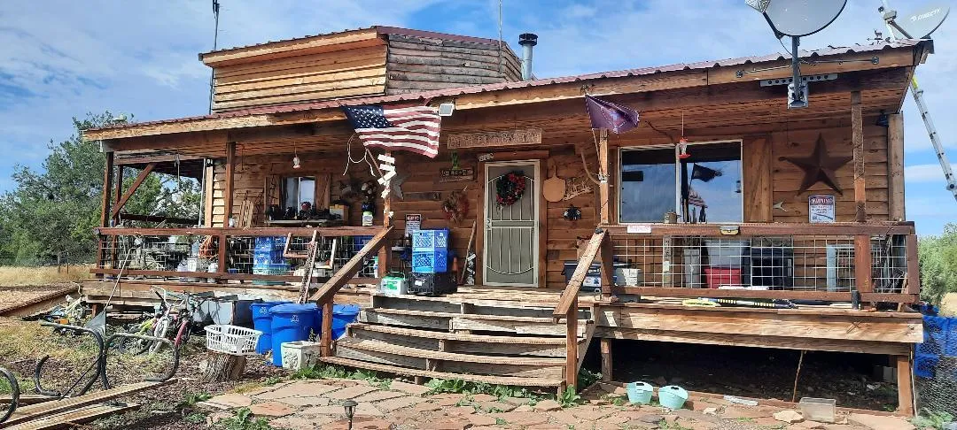 PRICE REDUCTION Huge almost 1800 sq/ft cabin on 39.95 acres with 3 bedrooms and 1 bath. Has upstairs with look out porch for great views. Large 8x40 front porch. Completely fenced and abuts 640 acres of State Trust land on the south. Deer, Elk, & Antelope roam here in hunt zone 10 on the best Off Grid Development. Has Septic, Solar, Hot Water, Propane and Generator. A 40 foot steel container for extra storage. 1500 gallon water tank with washing machine. Water delivery is available..... Or water catch! Views of San Francisco Peaks to the east and Mt Floyd to the west from this elevated property with lots of mature junipers. Has a couple hidden valleys. Great for hunting or just a Get-Away! Owner may carry with large down! Call for showings.