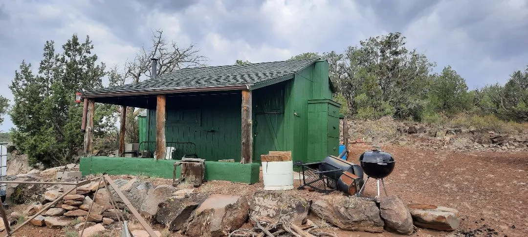 Talk about a peace of mind! Drink your cup of joe on the front porch admiring to the east at the San Francisco Peaks and Bill Williams Mountain range. To the north is 640 acres of State Land. This 12x16 cottage has a kitchen with small fridge and propane stove. Water is piped in from a holding tank and electrical wired for that outside generator. Wood stove for those chilly days. This is a great buy at this price!