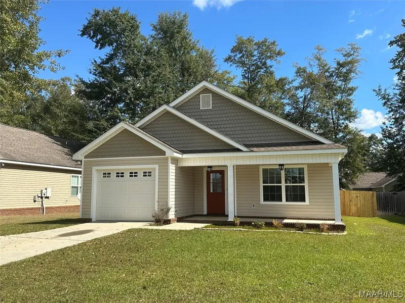 This charming 3 bedroom/2 bath home located in Woodland Park is convenient to schools, restaurants, golf, Ft. Novosel and shopping in downtown Enterprise. The open floor plan has vaulted ceilings in the living room with laminate wood floors. The spacious kitchen has stainless steel appliances & tile backsplash. The primary bedroom has new carpet. The ensuite bath has double vanity sinks and a large walk-in closest. The back patio is screened with a fenced in backyard.