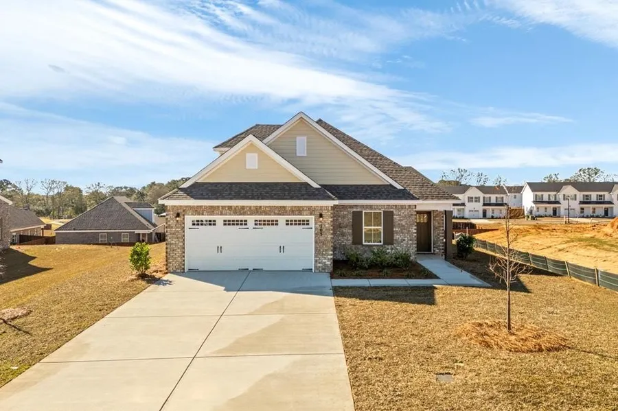 The Sherfield is thoughtfully designed to complement a variety of lifestyles, offering distinct yet connected living spaces. A welcoming foyer opens to a vaulted great room with beamed ceilings and inviting ambiance. The kitchen features generous granite countertops and built-in functionality, ideal for both everyday use and entertaining. A private retreat includes space for larger furnishings, a spacious closet, and a well-appointed bath. Additional main-level living areas offer flexibility, while an upstairs bonus room with a full bath and closet adds even more versatility. A covered porch and two-car garage complete the home. Lot 22, phase 4