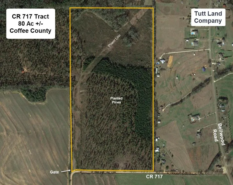 This is an outstanding opportunity to own a beautiful tract of land outside the city limits of Enterprise but very convenient to town. The CR 717 tract is 80 acres, mostly wooded, with a quarter mile of County Road frontage located just off Bellwood Road less than three miles from the Boll Weevil Circle. The CR 717 Tract has multiple best-use options: it would be an ideal location to build a nice country home and develop a farm if you are looking to build close to town. The trees could be harvested, and the land converted to pasture or hay field if you want to raise some livestock. Or, it could be left to grow large pine trees and held for a long-term investment and a recreational tract.