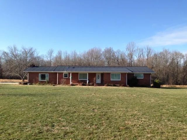 Brick ranch home with updated kitchen, vinyl replacement windows, all laminate flooring and a metal roof. The formal living room would easily be a fourth bedroom. Relax in the large den with a gas fireplace and beautiful built in bookcases. Nice concrete driveway and 2 car attached garage. Screened in porch and large storage room off of the garage. Also Handicapp Assessible. All this on a large 1.95 ac lot.