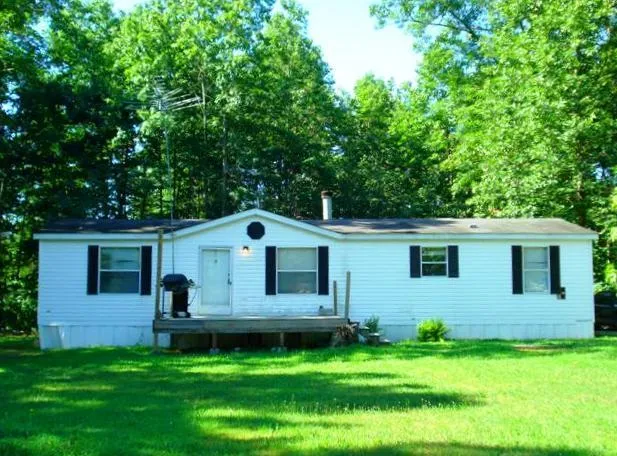 Nice wooded area and cute home. The living room has a nice stone fireplace and an open kitchen with lots of cabinet space.