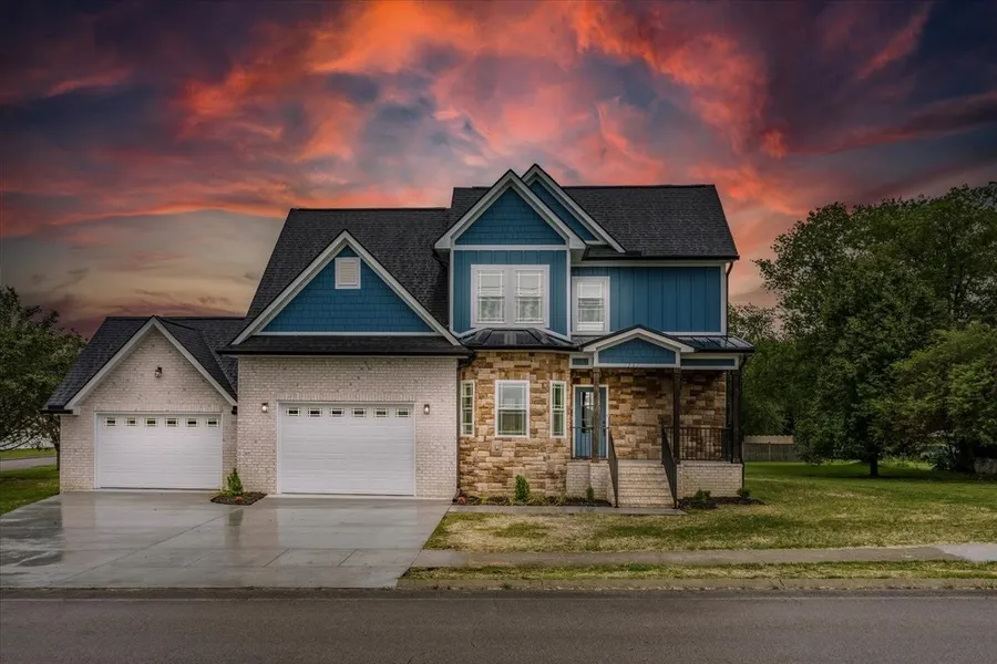 Discover this stunning new construction home located within walking distance of West Middle School. Designed with exceptional attention to detail, this property offers a perfect blend of style and functionality. The exterior showcases a beautiful combination of brick, hardi, and rock, complemented by a charming tongue-and-grove ceiling on the front porch. Inside the home features elegant marble tiling throughout the formal dining room & kitchen, while the great room boast an accent wall,hardwood flooring and soaring ceiling. The luxurious primary ensuite on the main floor is a true retreat, complete with a tile shower, double vanities, and granite countertops that flow seemlessly throughout the home. Upstairs, you'll find the same high quality finishes as the main level, with spacious bedrooms featuring plush, luxurious carpet. Situated on a corner lot, this home also includes a three ca...