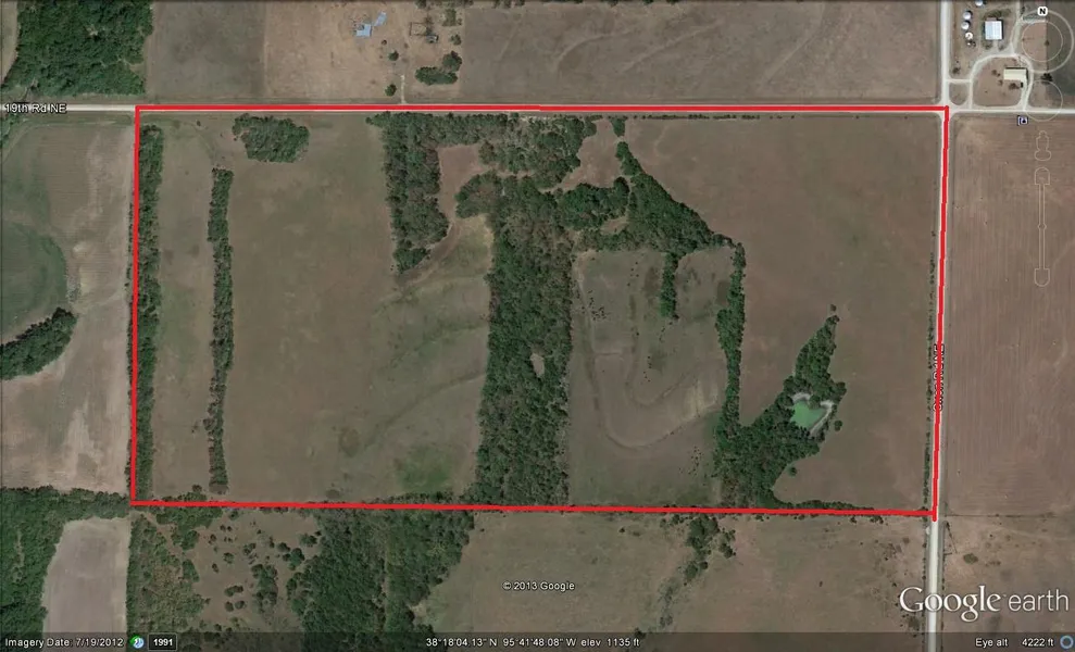 Income producing, recreational land in Coffey County, Kansas - Property is at the corner of 19th Rd. NE & Oxen Rd. NE, Burlington, KS 66839