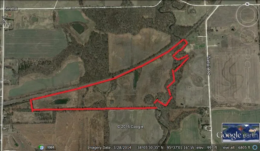 Great little farm that will hunt big, located in Coffey County KS. near the town of LeRoy. This 65 acres is located in the middle of a section using a railroad easement for access, so there is no road frontage providing the ultimate seclusion. With USDA payments and 2 oil wells currently producing this farm has a nice return on investment. The USDA payments come from a tree planting program, filter strips and a duck marsh, the programs run out in 2017 and 2020 with a possibility of renewal. The oil wells are steady and all mineral rights transfer 100%. If youre into deer hunting you wont find a better property with great genetics, a big clover plot in place and located on the famed Crooked Creek. Several 200 deer have been shot within a few miles of this property and I personally have hunted it a couple years and had taken a 160 and 172 bucks.