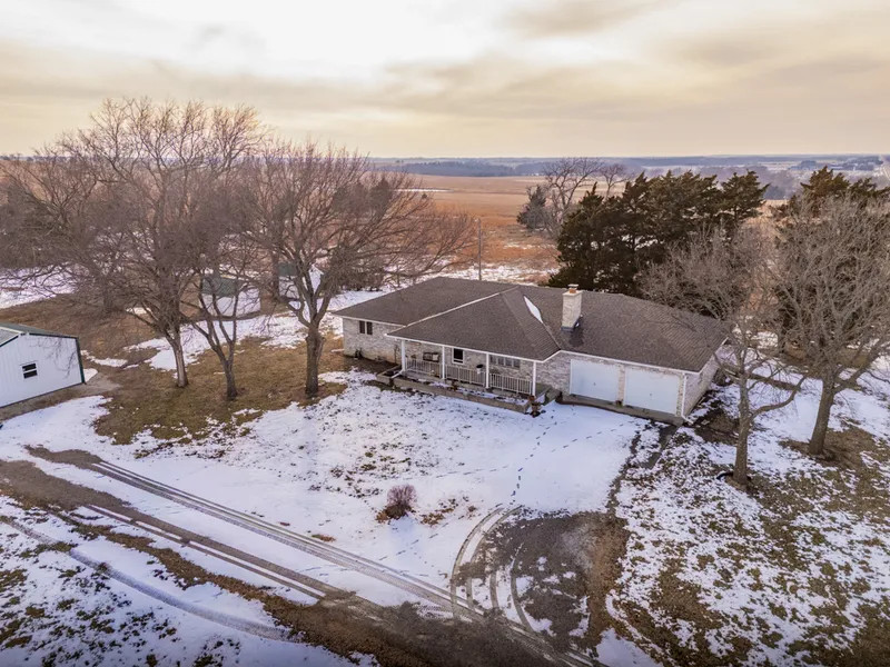 Perched atop King’s Hill, 719 12th Road in Burlington, Kansas, offers a rare combination of elevation, acreage, and a well-built brick home. This 3 bedroom, 2 bath residence features 1,927 finished square feet on the main level and is highlighted by a beautiful fireplace in the family room that serves as a warm focal point for gatherings and everyday living. The hilltop setting provides long-range views, privacy, and a true sense of place that is seldom found in Coffey County.