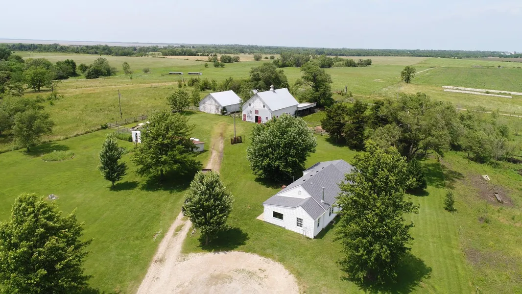 There are multiple outbuildings featuring a grand classically-styled barn with horse stalls, tack-room, feed-room and office all on the first floor with a huge hayloft on the second floor. The numerous other outbuildings provide plenty of storage for equipment and shelter for your farm animals. The acreage is fenced around the perimeter and also has multiple pens around the barn area to help you manage your livestock how best suited to your needs. The pasture portions feature two ponds in separate traps to water livestock or to enjoy a tranquil evening fishing with the family. Give Terry Anderson a call at 620-364-6826 to set up a tour of this awesome rural property!