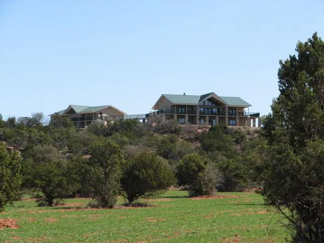 If the headquarters are not quite enough let us consider this masterfully planned two story home (or lodge). Each story of this elegant structure supports all the amenities of a home or lodge privacy for both owner and guest, each to their own floor. The lower story has four bedrooms, four baths, kitchen/dining and great room plus full wrap around deck. The upper story has one bedroom, 1 1/2 baths. Great room with fireplace, open concept dining & kitchen plus full wrap around covered deck offering an outstanding 360 degree view of the ranch. There is a raised walkway from the upper deck to the garage office with a stairway down to the vehicle garage. You might also want to step in to the homes spacious hot tub.