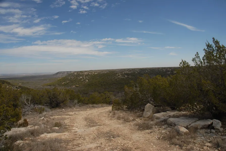 Land: The ranch has sweeping canyon views from the prominent divide. The habitat across the landscape transforms dramatically from mesquite flats, to rocky, cedar covered slopes and down into the beds of the canyons. There is a dramatic two hundred-fifty feet of elevation change across the property, from the lower reaches of the canyons to the summit of the divide. The Seller has discovered a three room cave on the ranch.