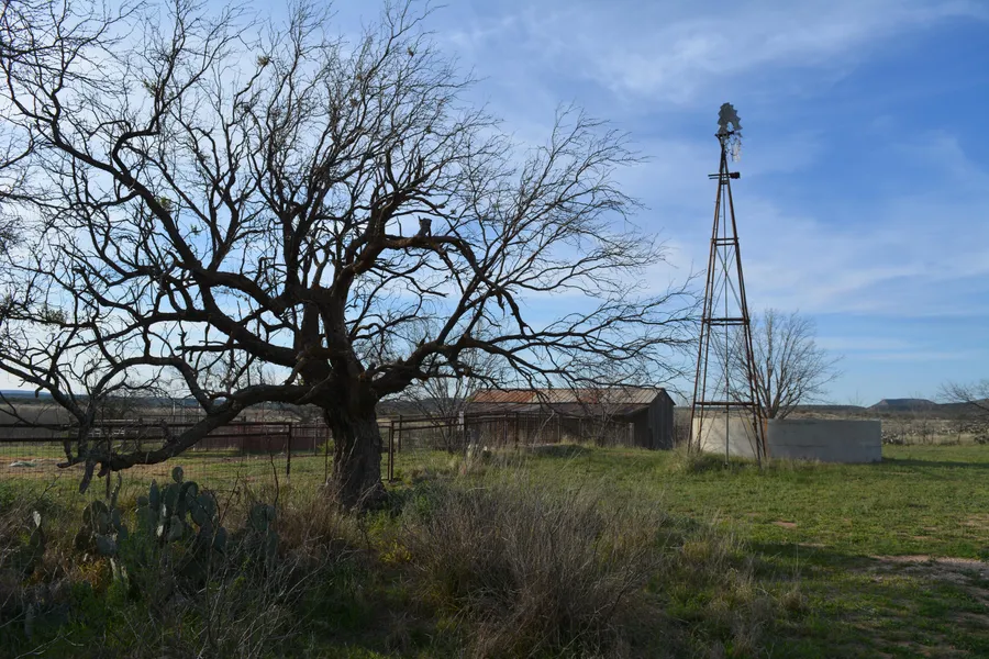 The ranch is watered buy two wells. One is and older windmills well and pumps into concrete reservoir and gravity feeds to water trough. The second well is a newer solar well that was tested when drilled at 30 gpm.