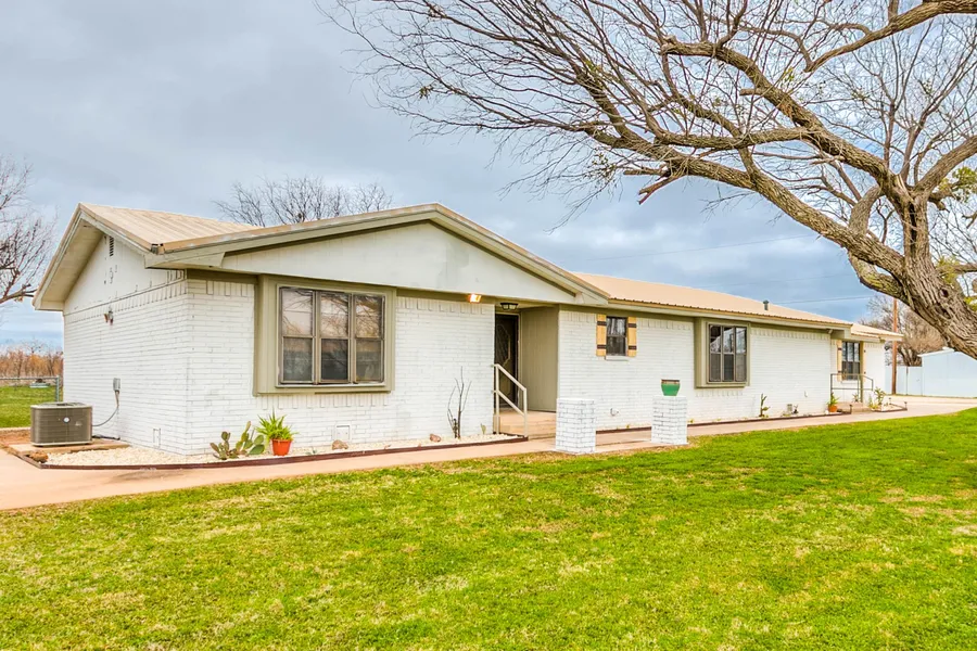 Rare opportunity to live on the edge of town (just outside of city limits, but includes city utilities) at the end of a dead end road with updated home and 8 acres! Property has plenty of room for extra parking with 2 outbuilding to serve as shop, weight room, or whatever your needs might be. Hot tub was purchased in 2018 and conveys. There are animal pens, should one want to raise livestock. Land has ag exemption and is set up in transferable Environmental Quality Incentive Program for future improvements. Cactus, small mesquites have been sprayed already. The house plan is open and inviting with plenty of natural light and is peaceful. Kitchen has been updated with new appliances and granite countertops. Tastefully done and ready for move in!