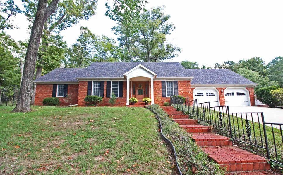 Timeless in design and rich in character, this all-brick 1.5-story beauty offers inviting spaces inside and out. The formal living room with built-ins and fireplace flows to a formal dining room highlighted by elegant lighting. The main-level family room is the heart of the home, featuring a wood-burning fireplace and sweeping views of the outdoors that opens seamlessly to the kitchen. A cook's dream, the kitchen boasts a 5-burner gas range, classic white cabinetry, and eye-catching backsplash. The main-level primary suite impresses with an updated bath, double vanity, walk-in shower, and dual closets that include a massive walk-in. Upstairs offers two additional bedrooms and a full bath for convenience. The lower level hosts a sprawling family room and two oversized storage areas.