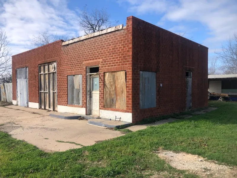 Corner Lot with old brick building that was once a service station. Two work bays and storage. City utilities available. In need of repair.