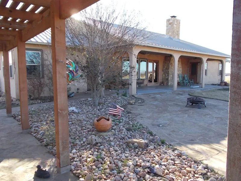 Luxurious single story home built with many custom features. Has an open floor plan full of natural lighting. Fireplace. Large porch with view facing the Santa Anna Mountains in the distance. Four bedrooms and four bathrooms. 3,574 square feet (per CCAD) and built in 2007. Located about 10 miles south of Santa Anna. Remote setting as the nearest paved road is over 2 miles away. The property is currently used for horse and cattle grazing. Improvements include a small guest house, pipe cattle pens, modern fencing, water troughs, implement barn, chicken coop, dog kennel, 2-car carport. The property is mostly flat and has improved grasses with scattered Mesquite trees. In January the two stock ponds were cleaned out and are patiently waiting for the spring time rain fall. Call today to see this beautiful property.