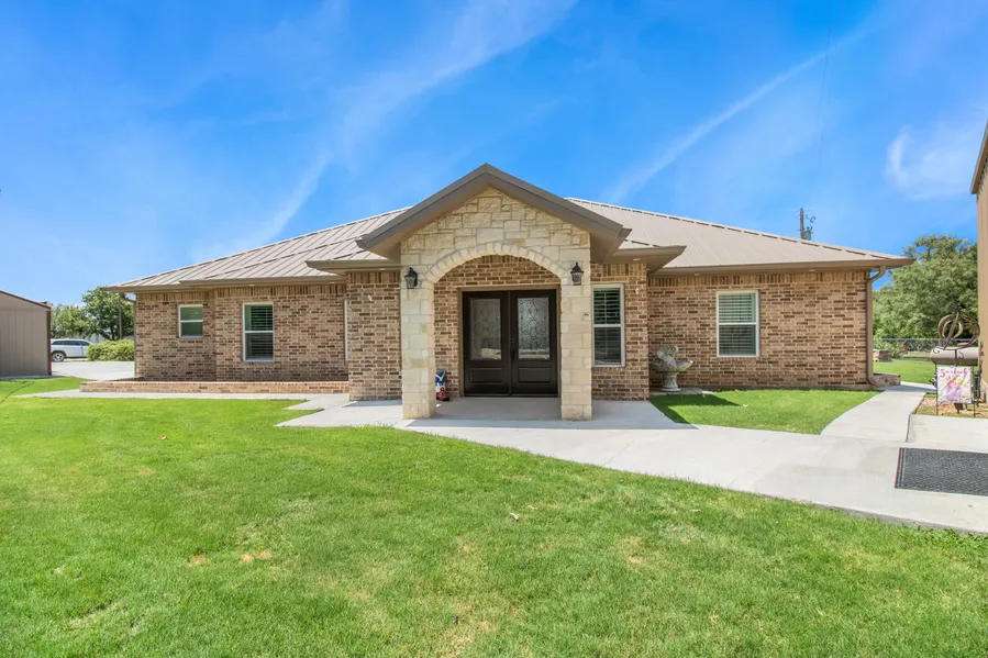 GORGEOUS NEW CONSTRUCTION 2 BED, 2 BATH BRICK HOME WITH ATTACHED 2-CAR GARAGE, 30'X40' METAL PARTY BARN & STORAGE SHED ALL FINISHED IN 2023 IN THE QUAINT COMMUNITY OF LAKE COLEMAN! LOCATED 14 MILES NORTH OF COLEMAN & 45 MILES SOUTH OF ABILENE, THIS INTERIOR LOT OFFERS THE PERFECT PLACE TO CALL HOME! HOME FEATURES OPEN CONCEPT LIVING TO KITCHEN, TONS OF WINDOWS! LOVELY WOOD-LIKE TILE & PLANTATION SHUTTERS THRU-OUT! GRANITE COUNTERTOPS & CABINETS GALORE IN KITCHEN FEATURING BUILT IN STAINLESS DOUBLE OVENS, DISHWASHER, ELECTRIC COOKTOP & MICROWAVE! SEQUESTERED MASTER BEDROOM! MASTER BATHROOM WITH DUAL VANITIES, HUGE GARDEN TUB, WALK-IN GLASS SHOWER & CLOSET! GUEST BEDROOM OFFERS EN-SUITE BATH! LARGE UTILITY ROOM WITH SINK, ROOM FOR FRIDGE AND WALK-IN PANTRY! PERFECT ENTERTAINING PARTY BARN WITH BATHROOM EXQUISITE KNOTTY PINE WOOD WALLS, COOLEST BAR AREA WITH SINK, FRIDGE, ICE MAKER AND BUILT-IN MICROWAVE! TONS OF SPACE FOR POKER TABLE, SHUFFLE BOARD, POOL TABLE! HEATED & COOLED WITH CENTRAL HVAC UNITS AND TANKLESS WATER HEATERS! GENERATOR ONSITE POWERS HOUSE AND BARN IN CASE ELECTRICITY GOES OUT! FANTASTIC HOME FOR LAKE LIFE!
