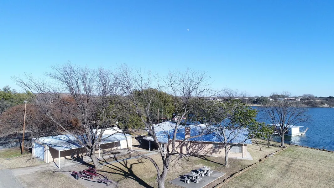 This beautiful home on Lake Coleman with easy access to the Northeast Lake entrance, quiet neighbors and excellent maintenance provides a ready to enjoy property on deep water. The three bedroom two bath home also has an open kitchen, living area and an additional room for an office or small den. Nice shop building/garage, carport, and covered boat dock with lift. Mature Pecan trees and scenic lakefront views!