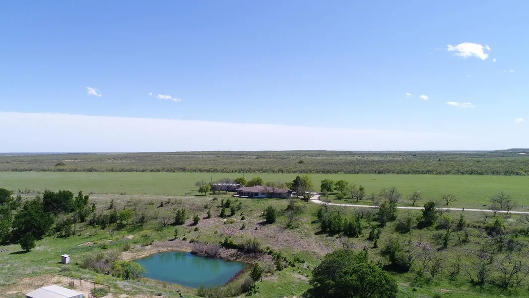 This stunning property offers a tremendous amount of diversity with more than 4,000 feet of Home Creek meandering through it. Panoramic hilltop views overlooking a beautiful tank, lush native grasses, and mature trees along the creek bed. 30 +/- acres that could be returned to cultivation for hay production or livestock grazing. Spacious brick home with fabulous views, two car garage, and a metal shop. Located on a paved Farm to Market road less than 10 minutes from town with private gated entry.