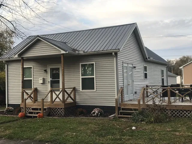 Just Listed !! This total remodel from the studs out in 2019 offers an open concept floorplan. The living, dining and kitchen are laid out beautifully . The kitchen has all new stainless appliances as well as a large center island with seating. The kitchen has recessed lighting and a ceramic backsplash. These three rooms all have attractive laminate flooring. The bedrooms are comfortably sized and all paint surfaces are clean and neutral. The laundry area has ceramic flooring and includes the HVAC and washer, dryer. From the dining area you can step out to a 19' x 14' wooden deck and enjoy entertaining or cookouts. The siding, windows, insulation and metal roof will offer you years of maintenance free living and there's a 2 car detached garage also on this great corner lot location with new siding and metal roof as well. All of these improvements were done in 2019. Looking for a cute move in ready home. You've found it!