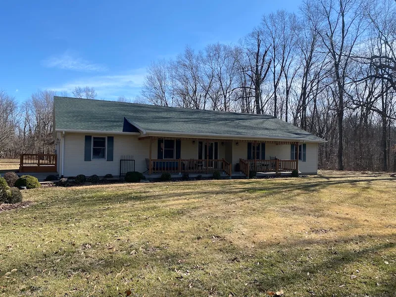 This beautiful ranch-style home is located southwest of Oakland on North CR 2300E. The house is approximately 2,222 square feet with a 22x28 attached two-car garage. The house is 2x6 construction, has Anderson windows, as well as a new roof which was installed in December of 2023. The front of the house offers a large 38x8 covered porch, which is perfect for relaxing and watching the sunset after a long day. As you make your way in the front door you will find a large entryway that leads to the living room. The living room offers cathedral ceilings, a brick fireplace, and a French door to access the back yard and second covered porch. The back porch is 10x18 and is the perfect location to entertain friends or family. The large eat-in kitchen and bar area are located just off the living room. The kitchen offers plenty of countertop space, cabinets, and a great view of the back yard. The opposite end of the house is where you will find the three bedrooms and two full bathrooms. The master bedroom is 16x16 and boasts two large walk-in closets and a large full bathroom. The other two bedrooms are very spacious, and each has its own large closet. The laundry room is accessible from the garage and kitchen, as well as a second entry door leading to the north side of the house. North of the house is where the 30x50 shed is located. The shed has concrete floors, a wood burning stove, and plenty of room for storage as well as room to work. East of the shed sits a large garden area. This area has established blackberries, strawberries, raspberries, blueberries, asparagus, garlic, spring onions, and fruit trees. There are also two smaller buildings that the current owner has for storage as well. There is also an area used to play basketball next to the sheds. Most of the property is wooded and made up of rolling hardwoods and thick creek bottoms. There are a few trails established to help you navigate around the property and gives you access to the far east side. The property offers good hunting, and it is not unusual to see both deer and turkeys daily. If you are looking for that perfect country home with outbuildings, garden area, and hunting opportunities, look no more.
