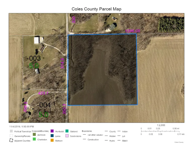 PRIME LOCATION SOUTH OF COLES COUNTY AIRPORT! +/-10 Acres PERFECT building location between Mattoon & Charleston. This would be in the Charleston School District. South of the Airport off of County Road 1100 East. Currently actively being farmed. Property does have border CRP program in place through 2025. If you are looking for a little piece of country living with privacy and an excellent location look no further. Call today for details.