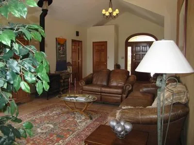 Enjoy panoramic views of the Angel Fire Ski Mountain and the Moreno Valley from this fabulous 2500+/- SF home on 10 acres bordering Carson National Forest. The many outstanding features of this home include 3 bedrooms, 2.5 baths, 2 car garage, exterior stucco finish, radiant floor heat, a wood burning fireplace in the den and a wood burning stove in the living room. The large windows fill the home with light and warmth, bringing the outside in. The spacious and private master suite has a walk-in closet and an office niche. A generator will supply the entire home in case of a power outage. This lovely home is being offered fully furnished, including two high definition TVs. A truly elegant retreat with a prime location (25 minutes to Taos and 10 minutes to Angel Fire), an...