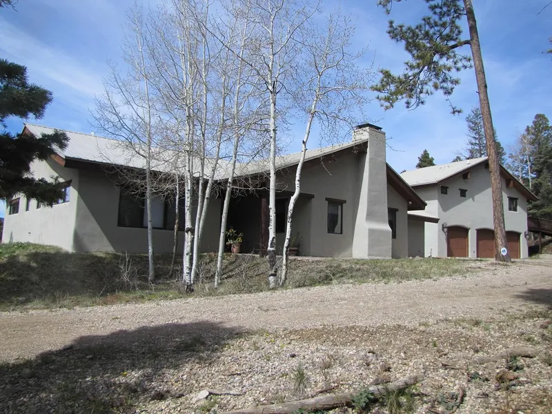 A rare find in Angel Fire... A fabulous 3000+/- SF, 3BD/ 3BA/ 3CG on 2.4 acres plus a separate 1000+/- SF, 1BD/ 1BA guest house. Built by Cottam Construction, this energy efficient Rastra Block home offers 3 Kiva fire places, radiant heat, flagstone floors, diamond plaster walls, vaulted wood ceilings, and walk-in closets in each bedroom ....all on one level! A must see!