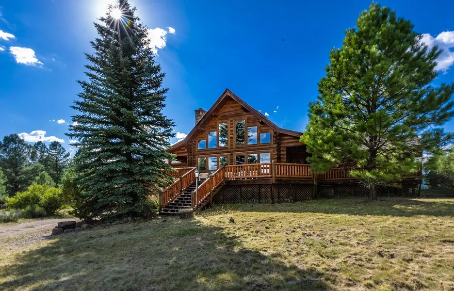 Grand Swedish-cope style log home, close to town, with amazing views! This custom-built log home boasts vaulted ceilings, custom log truss work, and a fireplace with real stonework. Open living area with floor to ceiling windows and gorgeous mountain views. This home stands out with all the detail, it feels like a true Mountain Lodge. The open log staircase takes you to a loft that could provide a dedicated workspace, second living area, additional sleeping, work out room or a combination. Bedrooms are all on the main floor, and all three bedrooms have ensuite baths. The primary bedroom has it???s own private wing of the house. Primary bath has a large double vanity, jetted tub and custom tile shower. Large front and back decks showcasing views of the Ski Mountain on one side and Wheeler Peak on the other. Walk outside and get on the hiking trail at the back property line. This home sits...